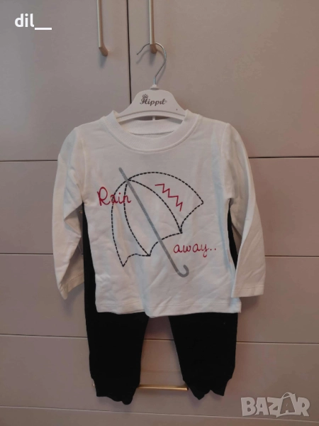 Нов с етикет! Комплект : тънко якенце, блузка, панталонки, размер 2 години. цена25лв