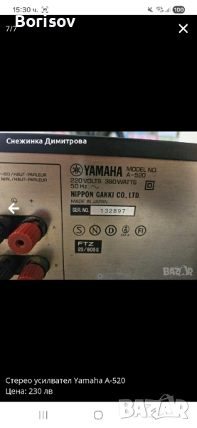 Стерео усилвател Yamaha A-520 → Обява 52039043