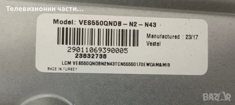 JVC LT-55VA3200 със счупен екран.Панел VES550QNDB-N2-N43.Матрица HV550QUB-F70 Rev.2.0