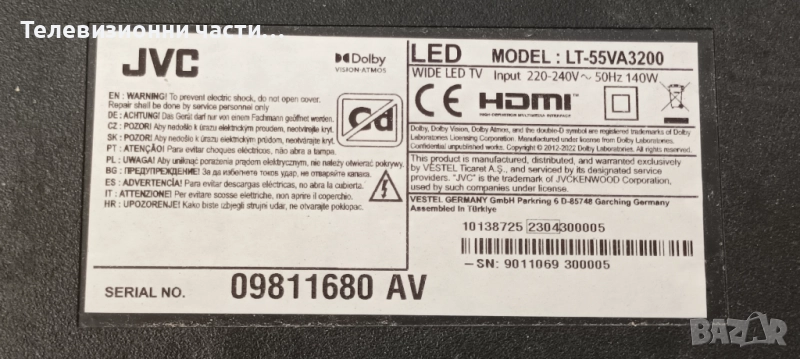 JVC LT-55VA3200 със счупен екран VES550QNDB-N2-N43/17IPS72 160621R7/HV550QUBF70 44-9771690A