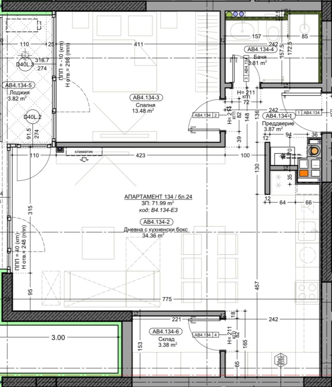 Дневната е просторна с кухненски бокс 38 кв.м, с място за уютна зона за отдих и комфортна трапезария. Спалнята е 13,48 кв.м, подходяща за голямо легло и гардероб. Банята e модерно завършена с висококачествени материали, а терасата идеална за сутрешно кафе или вечерен релакс. Включено е и мазе в цената. Апартаментът има възможност за довършване с обзавеждане при договаряне на условия допълнително.