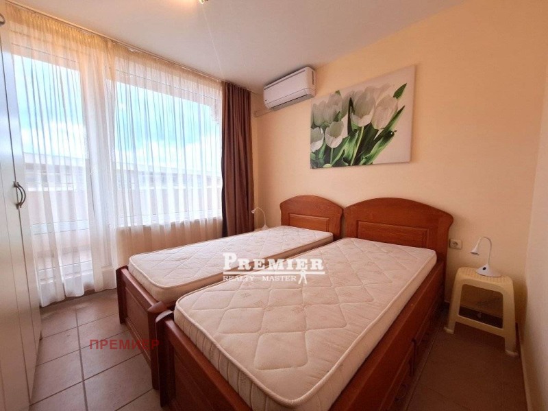 Предлагаме на вашето внимание прекрасен, светъл апартамент в затворен комплекс. Апартаментът се състои от: две спални, входно антре, хол с кухненски бокс, две бани и две тераси. Напълно оборудван и обзаведен. Апартаментът се намира на 4-ти етаж, площ 77 м2. Комплексът се намира в непосредствена близост до най-големия аквапарк в България, на 10-15 минути пеша (700 м) от красивия плаж на курорт Слънчев бряг и на по-малко от 500 метра от центъра на курорта Слънчев бряг, който предлага разнообразни забавления за възрастни и деца. На територията на комплекса са на разположение: -3 ресторанта; -бар; -виенска сладкарница/кафене; -8 басейна; -магазини; -фитнес зала; -детска площадка; -футболно игрище; -тенис корт; -безжичен интернет в целия комплекс; -зона за отдих с цветя; -паркинг. Комплексът е подходящ за целогодишно ползване. Без комисионна за купувача.