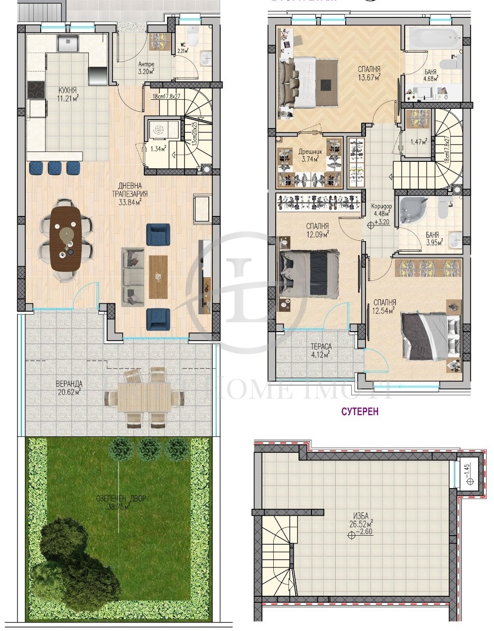 Предлагаме ви двуетажна редова къща с три спални в новоизграждащ се затворен комплекс от луксозни къщи!