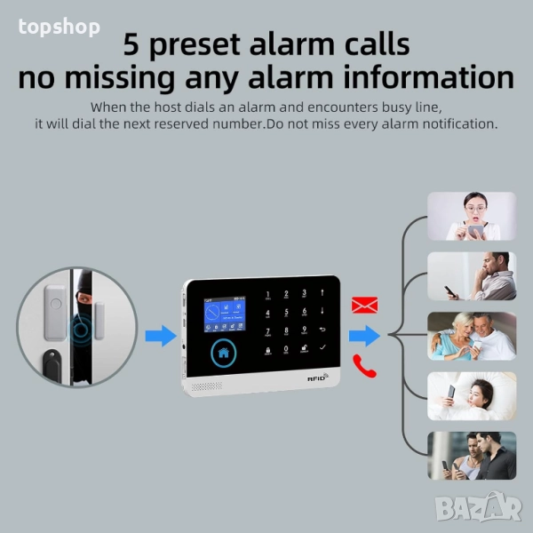 【ЗАЩИТА ПРИ ВЗЛОМ И СПЕШНИ СЛУЧАИ】Бъдете първите, които ще разберат кога вратите и прозорците се отварят. Свържете всички ваши Wi-Fi алармени компоненти и ги сдвоете с мобилните си устройства чрез алармения панел. Получете помощ веднага щом имате нужда от нея, като поставите безжичния дисплей хъб в обсега си, за да натиснете паник бутона (SOS) и бързо да задействате сирената.