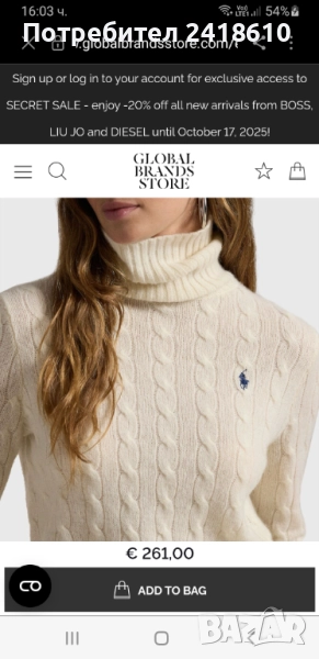 Оригинален бял дамски вълнен поло пуловер - нов!!