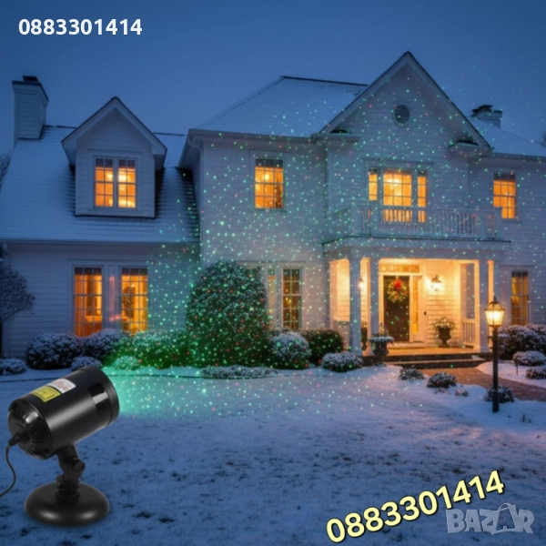 Нов лазерен прожектор за празнична украса на двора или градината. Осветява пространството с красиви светлинни ефекти, подходящ за празнични вечери и празници.