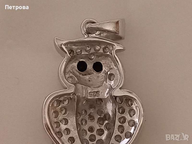Нова сребърна висулка с бухал и камъни Сваровски → Обява 52041390