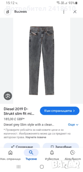 Diesel D - Struct Slim Fit Mens Size 34/32 НОВО! ОРИГИНАЛ! Мъжки Дънки!