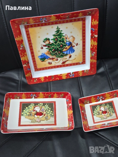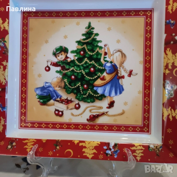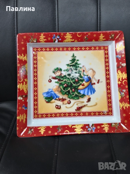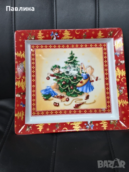 Красива порцеланово плато за Нова година на марката Villeroy & Boch. Подходяща за сервиране на празнични ястия или за декорация в дома. Размер 24,5 см./23 см.