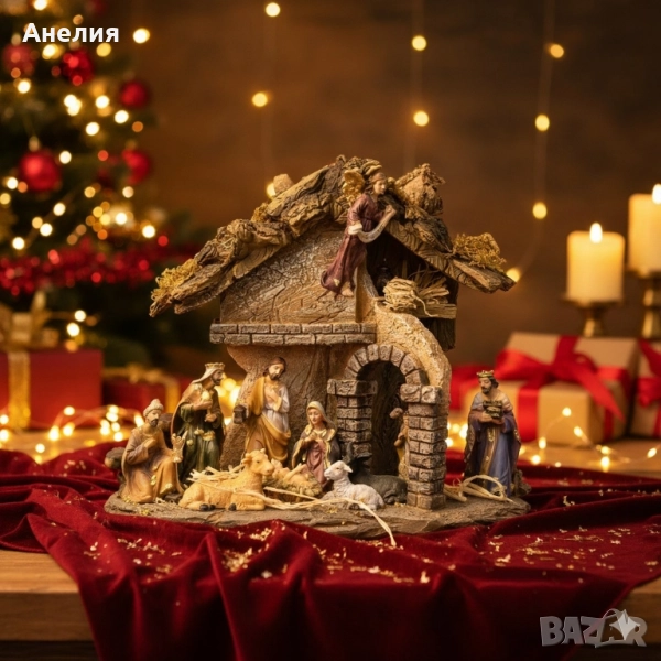 Коледна сцена „Рождество Христово“ – завършена ясла с фигури, която носи смисъл и уют у дома