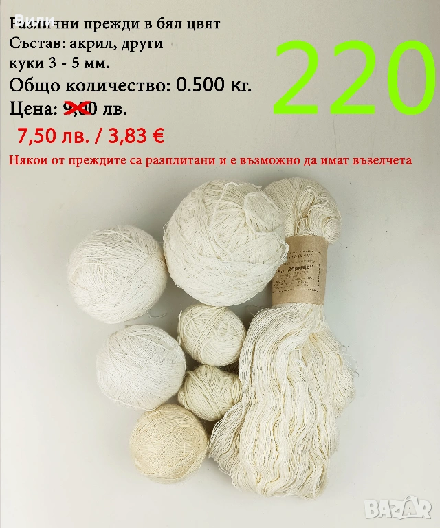 Евтини прежди в малки количества - нови и остатъци → Обява 52042403