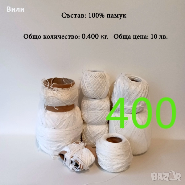 Евтини прежди в малки количества, котон кроше - нови и остатъци → Обява 52042552
