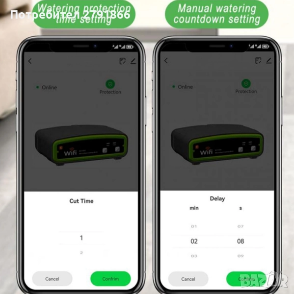 - 【Асистент за ваканция】 Защитите ще се включат след задаване на времето за защита, независимо дали поливате ръчно или в режим с таймер. Максималното време се базира на времето за защита. Честотата и продължителността на поливане могат да се задават свободно. Тази система за поливане на растения по време на ваканция може да се използва нормално дори след временно прекъсване на захранването и след неговото възстановяване. Няма притеснения, че растенията ще умрат, когато излезете.