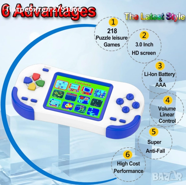 Тази преносима игрова конзола Beijue предлага фантастично разнообразие от интересни видео игри за деца, възрастни и възрастни хора. Презареждаемият 3-инчов цветен дисплей с вградени 218 игри-пъзела за развлечение включва спортни, приключенски и пъзел игри, както и игри за мислене и учене, включващи памет, математика и логика. Важното е, че повърхността на екрана е покрита със слой стъкло (както екранът на телефона). Това е, което повечето продукти от същия клас нямат. Това предпазва добре екрана и го прави по-издръжлив. Вашите деца ще харесат разнообразието от игри и никога няма да им скучае! Като готин подарък за рожден ден или Коледа за децата е наистина хубаво.