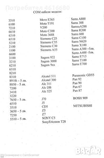 Кабели COM за: 8910i, 8850, 7200, 3410, 3220, 7650, 3510, 3650, 7250, 5510, 3310, 6100, 7210, 6610, 6310, 6510, 5210, 2100, 1100, 6600, 3100, 3210, 6210, 6310, 8210, 8310,
