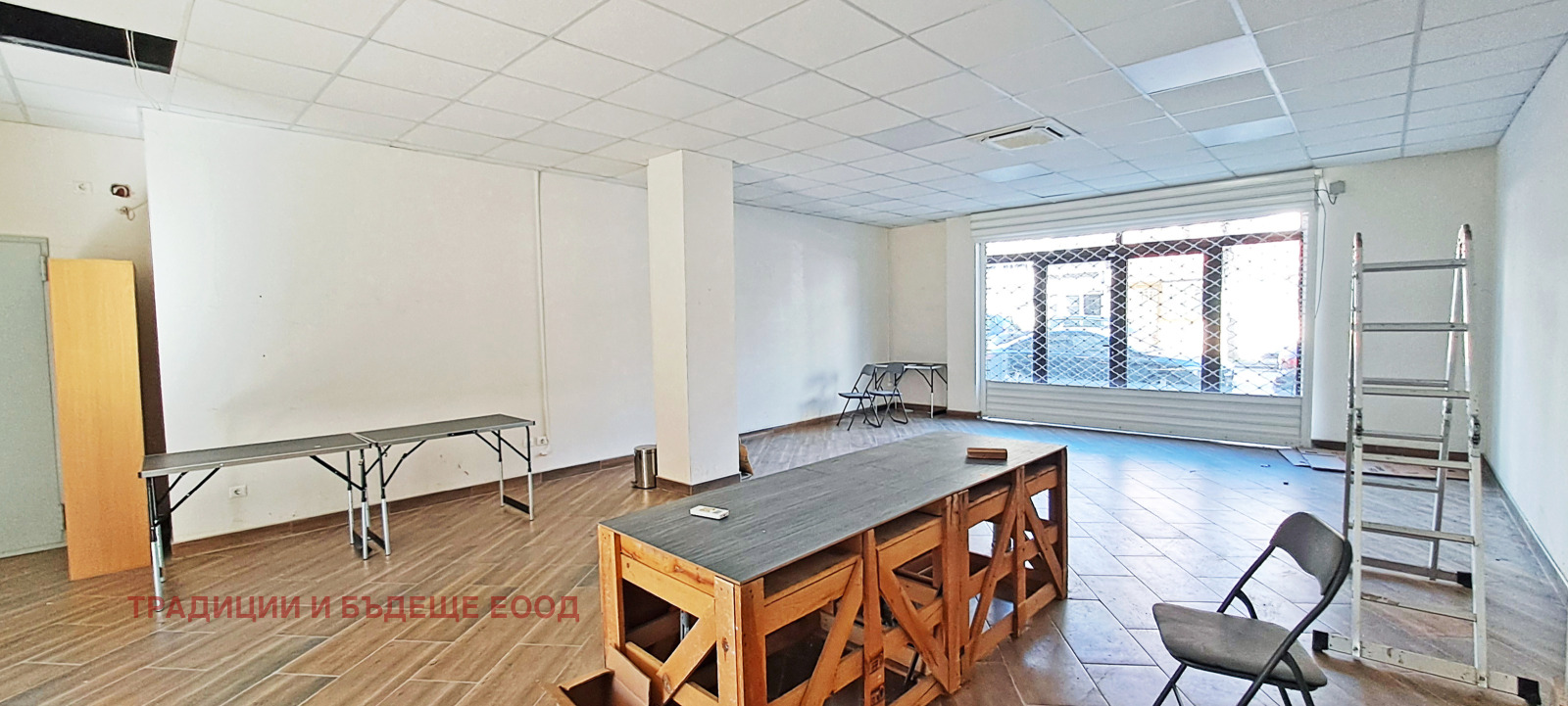 - едно голямо помещение 65 м² с витрина към улицата;