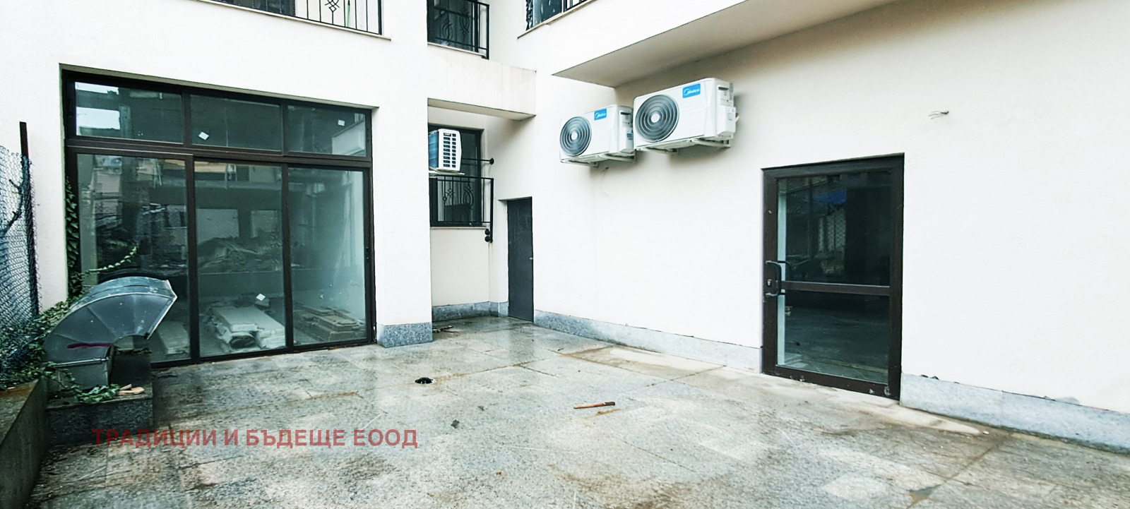 Вътрешния двор е с гранитогрес, а помещението към двора е с плъзгаща се врата.