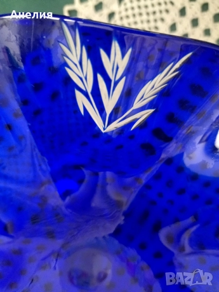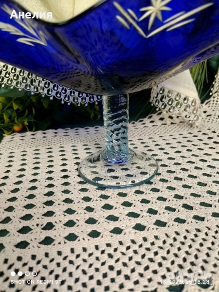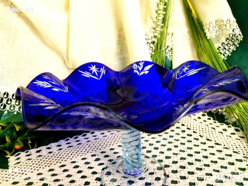 Кристална кобалтово синя купа - бонбониера, фруктиера или за сладки неща от оловен кристал , в отлично състояние.