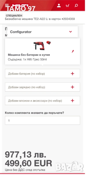 Магазинската цена на бодито е: 977лв. БЕЗ ДДС (С ДДСТО Е 1 172лв.)