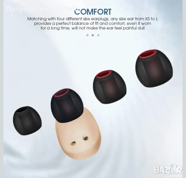 - Персонализирано прилягане: съдържа тапи за уши с различни размери за максимален комфорт. Меките тапи за уши минимизират фоновия шум и осигуряват сигурно и удобно прилягане.