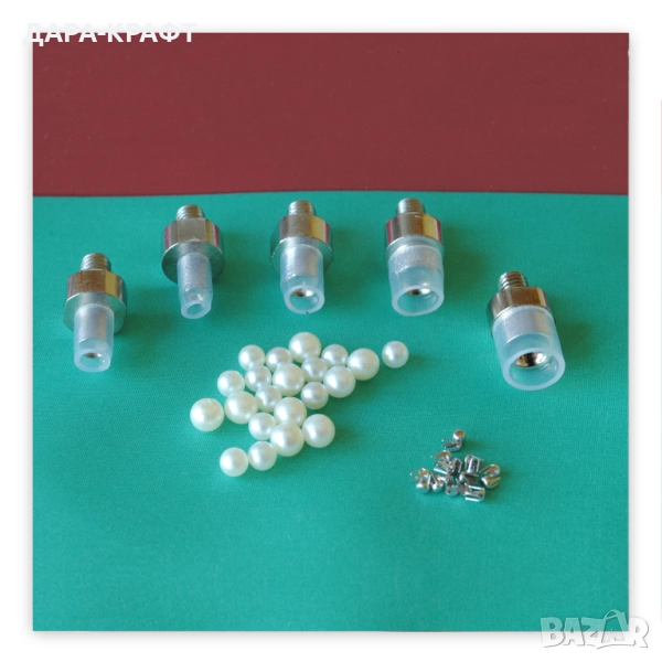 Един комплект съдържа: машинка и 5 накрайника за поставяне на перли с различни размери (4мм, 5мм, 6мм, 8мм, 10мм)