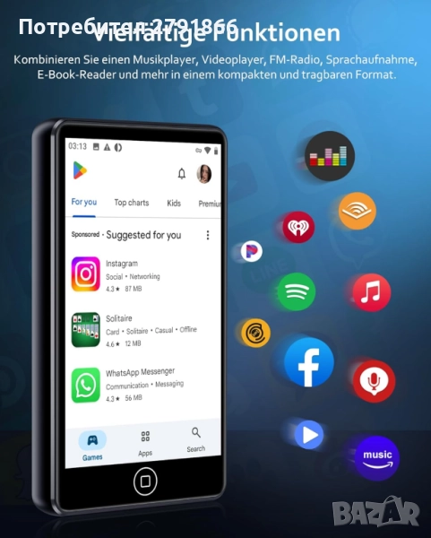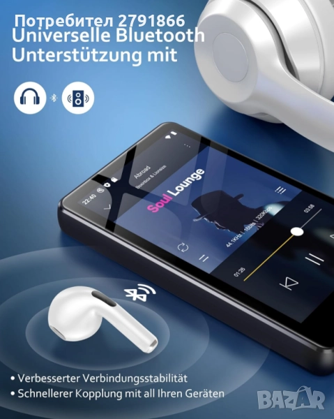 - MP3 музикален плейър за Android: MP3 плейърът с Bluetooth е оборудван с 8-ядрен MTK чип, който прави отговора на музикалния плейър по-бърз и плавен. Този MP3 плейър е предварително инсталиран с много от най-популярните онлайн музикални приложения, включително Spotify, Omnia, Deezer, Amazon Music, Play Store и др.
