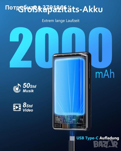 - 【Батерия с висок капацитет 2000mAh】Детският музикален плейър има литиева батерия с капацитет 2000mAh, а цялото устройство има енергоспестяващо решение, което позволява на Spotify плейъра да възпроизвежда непрекъснато 50 часа музика или 8 часа видео, така че можете да се насладите напълно на непрекъсната музика, докато пътувате и спортувате.