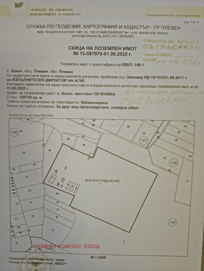 Имот 126 дек. Регулация с ПУП, 800 хил. евро (6.35 Е/м2)