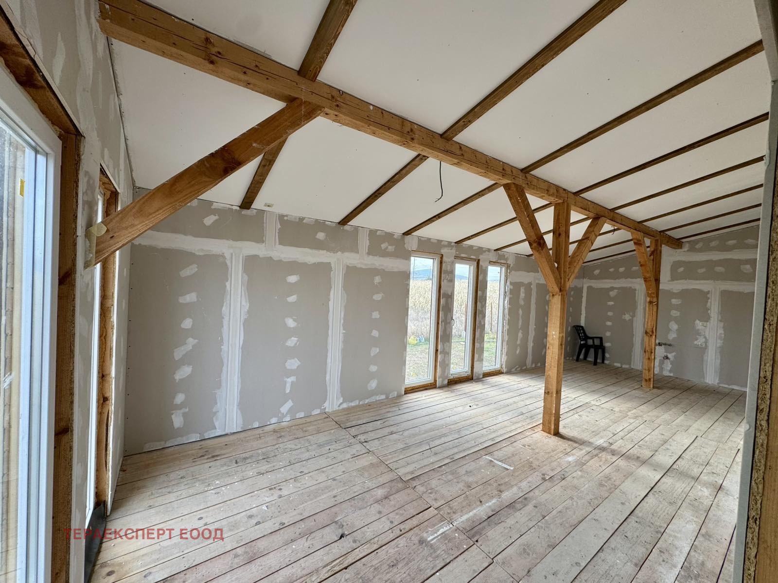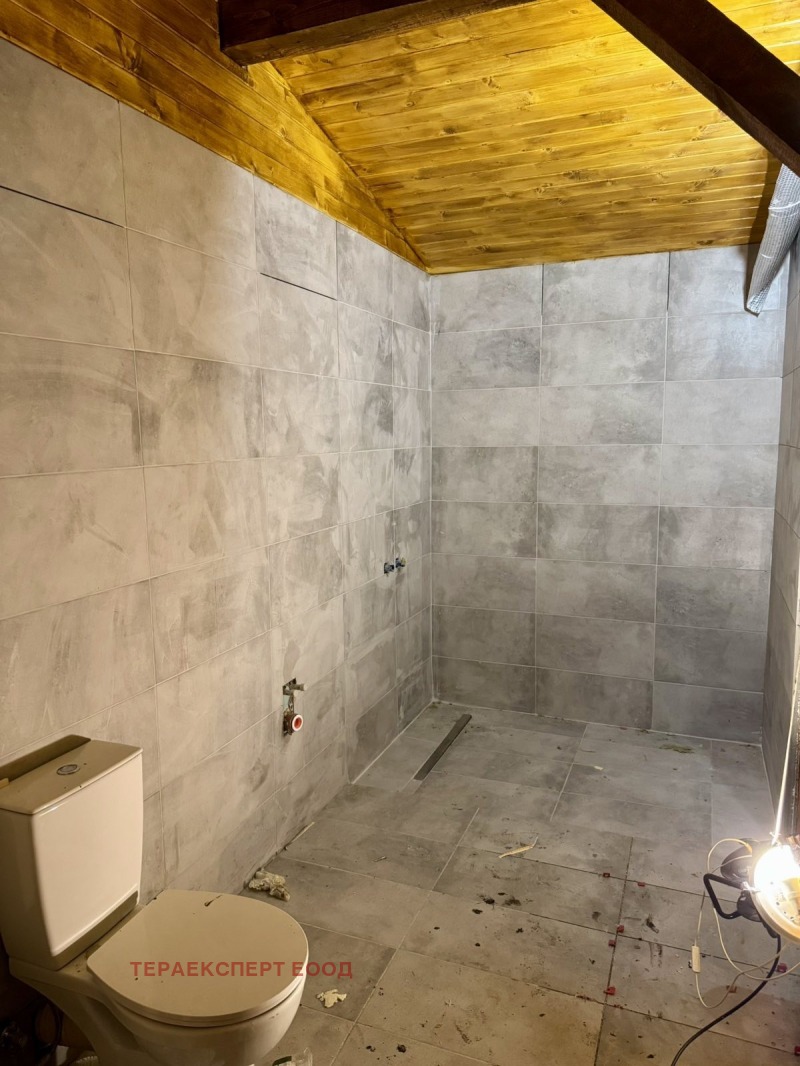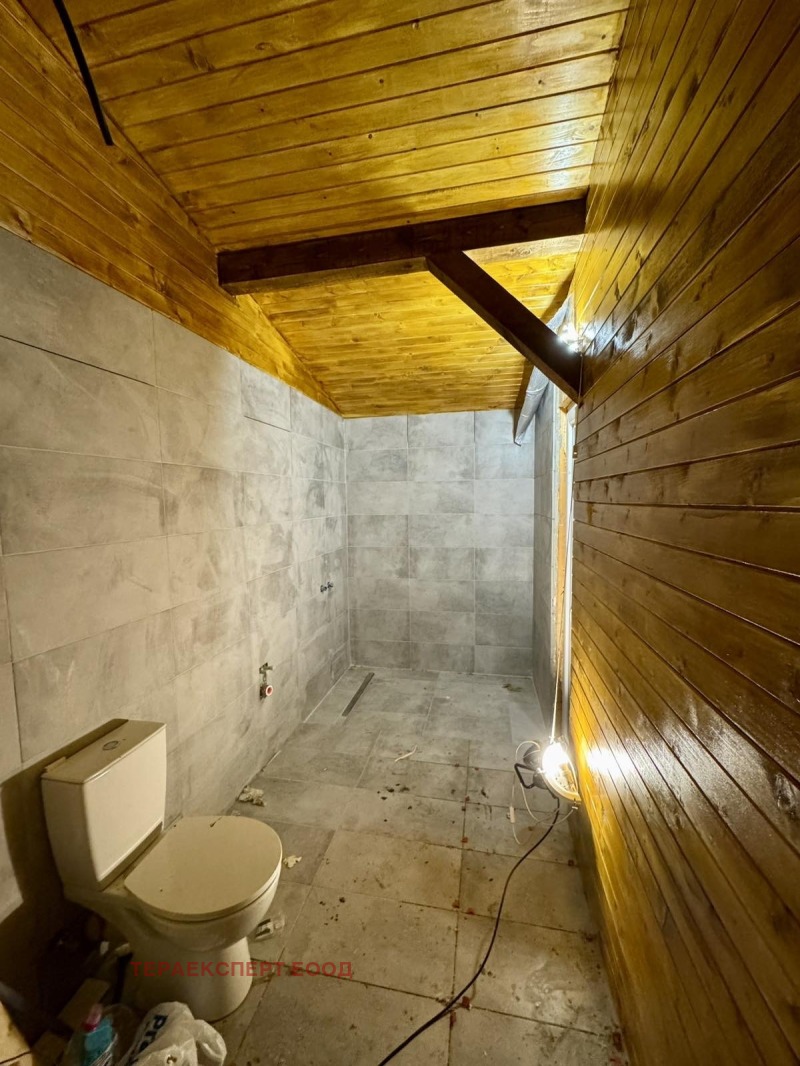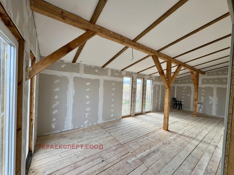Всяко помещение е проектирано с френски прозорци, които осигуряват обилна естествена светлина, простор и връзка с природата около дома. Таваните следват естествения наклон на покрива и придават усещане за пространство и обем в най-високата си точка достигат 3,60 м, а в най-ниската 2,20 м. Вътрешното пространство е подготвено с гипсокартон (етап фугиран), което оставя възможност новият собственик да оформи интериора според личния си стил. Банята е завършена изцяло с комбинация от гранитогрес и дърво, а в сервизното помещение е монтиран бойлер.