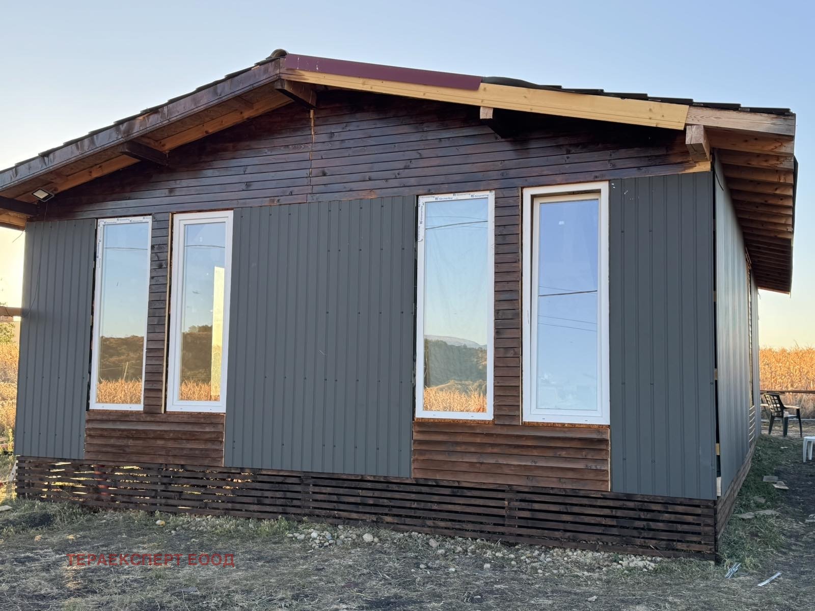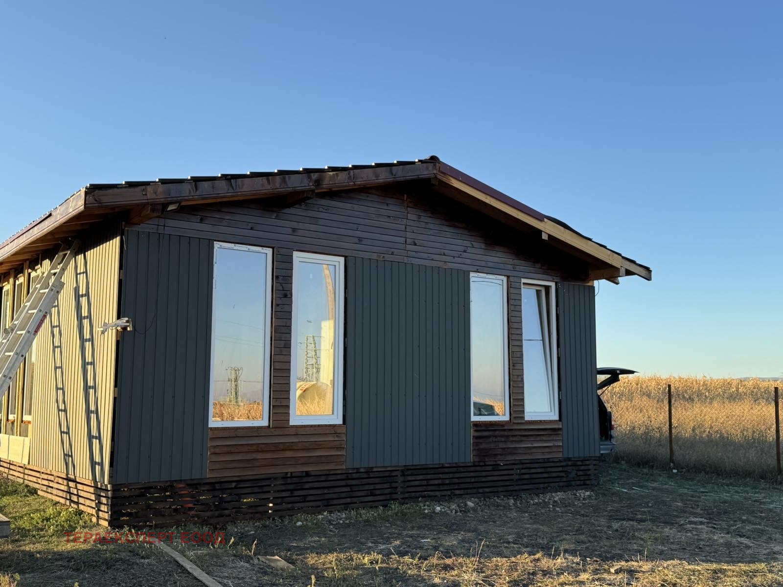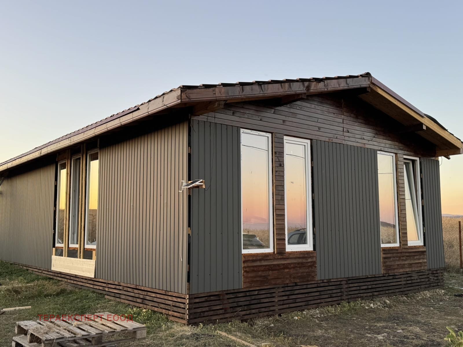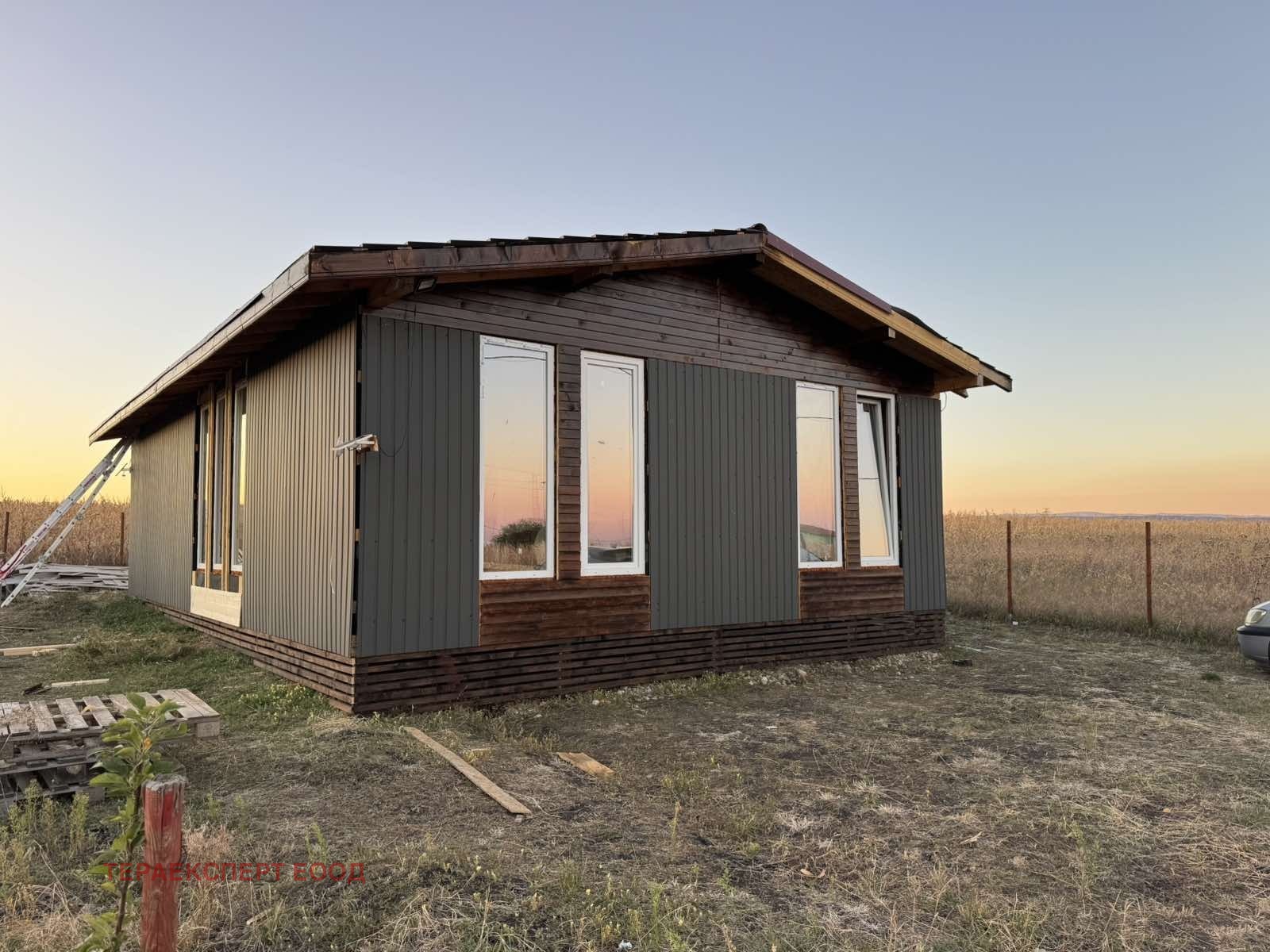 Продава се къща с невероятна гледка и удобства на разстояние от 15минути до метростанция . Сградата е с масивна дървена конструкция, която съчетава здравината на традиционното строителство с уюта и топлината на естествените материали. Фасадата е изпълнена в комбинация от метал и дърво, което придава едновременно модерен минималистичен стил и усещане за уют, в което важна роля играят дървените елементи.