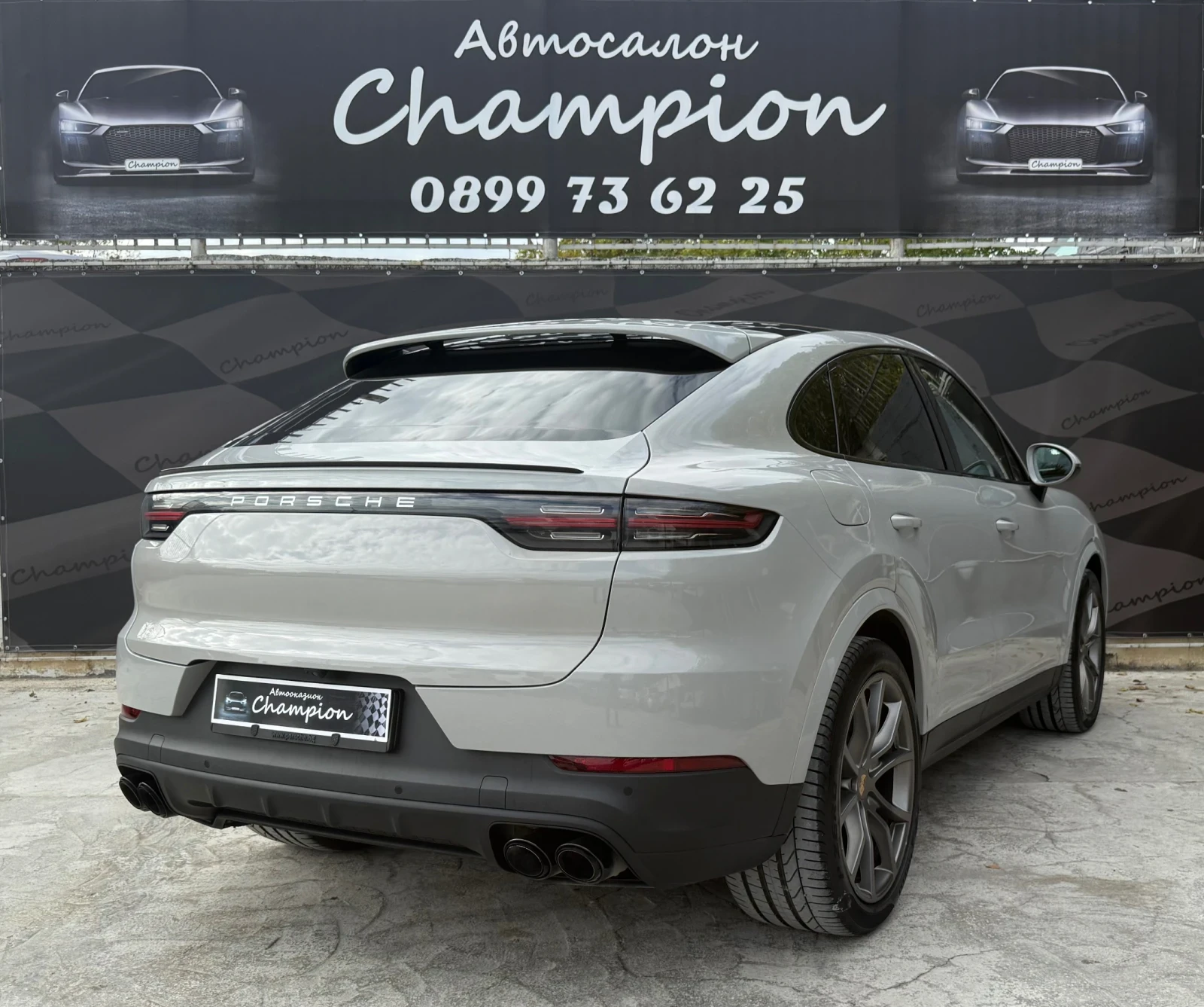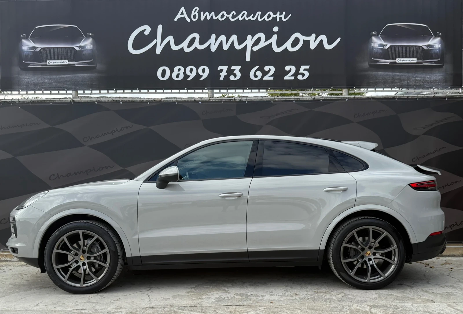 ? Адрес: гр Варна бул Цар Освободител 204 (Автосалон Шампион) ? София: www. shampionauto. bg/sofia Автосалон Шампион Ви предлага лесен начин да станете собственик на качествен автомобил с опция за бартер и лизинг Нашият лизинг е с одобрение в рамките на деня и без доказване на доходи което прави процеса бърз и удобен Може да използвате стария си автомобил като първоначална вноска или да го изкупим с незабавно плащане Разполагаме със собствен сервиз който може да използвате на преференциални цени след покупката Porsche Cayenne Coupe 3. 0 бензин 340 кс автоматик Nardo Grey червена кожа всички екстри Автомобилът е в перфектно състояние безупречно поддържан и напълно обслужен Моторът работи плавно и безупречно скоростната кутия превключва неусетно Окачването е стегнато и комфортно без никакви шумове или забележки Салонът е с луксозна червена кожа и изглежда като нов Технически данни 3. 0 бензин турбо 340 кс Автоматична скоростна кутия Tiptronic 4x4 задвижване Евро 6D Екстри Nardo Grey цвят Червен кожен салон Подгряване и обдухване на предни и задни седалки Дистроник адаптивен круиз контрол Панорамен стъклен покрив Спортен волан с пера LED Matrix фарове Асистент за лента и мъртва точка Камера 360 градуса и парктроник отпред и отзад Навигация Bluetooth USB Apple CarPlay Bose аудио система Електрически багажник Keyless Go 4 зонов климатроник AMG стил джанти 21 цола Drive mode селектор Ambient осветление Електрически регулируеми седалки с памет Страхотен автомобил напълно обслужен с пълна сервизна история безупречно поддържан само в представителство Перфектна работа на мотор и скорости без забележки реални километри ВЪЗМОЖЕН БАРТЕР И ЛИЗИНГ ПРИЕМАМЕ ВАШИЯ АВТОМОБИЛ ЗА ПЪРВОНАЧАЛНА ВНОСКА ? Тел 0899736225