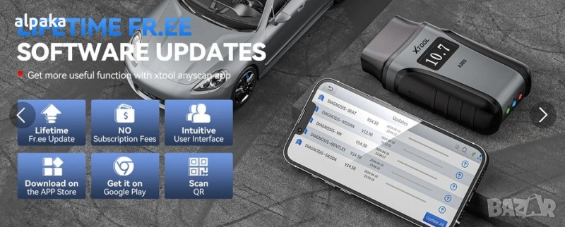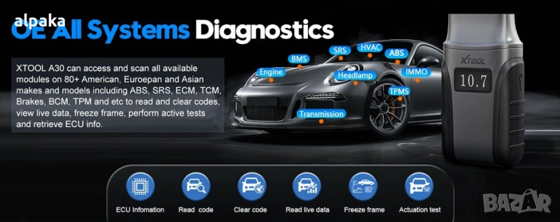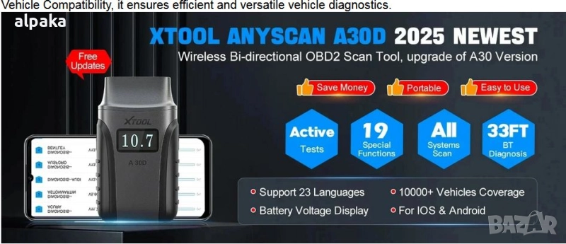 Безжичен OBD2 скенер с доживотни актуализации: XTOOL A30D скенер за автомобили поддържа – НУЛЕВИ абонаментни такси. Поддържа 19 услуги за нулиране, над 4000 активни теста и задълбочена диагностика на всички системи, която надхвърля простото четене на кодове за грешки на двигателя. Този диагностичен инструмент за OBD2 скенер е идеален избор за собственици на автомобили, любители на „Направи си сам“ автомобили и татковци, обичащи „Направи си сам“ автомобили. Със стабилна BT връзка, той гарантира, че диагностичният инструмент за автомобилен скенер работи надеждно. Моля, донесете ни VIN номера, за да проверим съвместимостта.