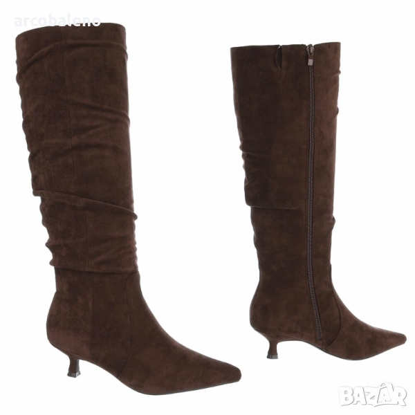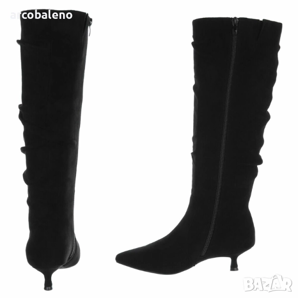 Потопете се в свят на елегантен стил с тези изящни ботуши, които съчетават комфорт и мода. Изработени от висококачествени материали, тези ботуши предлагат меко и удобно усещане, което ще ви съпътства всеки ден. Изисканият силует със заострен връх и нисък ток създава женствена привлекателност и експертно подчертава краката ви. Иновативни детайли, като извитите шевове и отличителното закопчаване, придават на обувката вечна елегантност, която е универсална. Идеални за по-хладните месеци, тези ботуши са перфектни за елегантни поводи или спокойни занимания. Те могат да се комбинират с рокли, поли или класически панталони, което ги прави перфектният аксесоар за жени, които следят модата. Насладете се на деня със стил и комфорт!