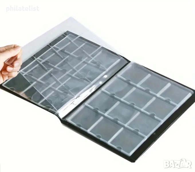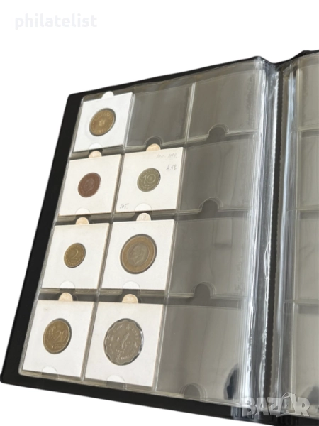 Класьора съдържа 10 листа за 120 монети в картончета. (50x50 mm. )
