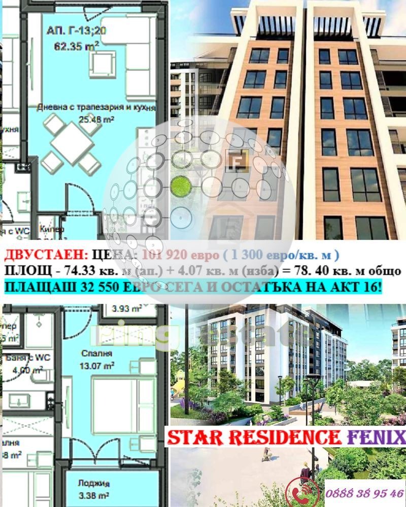Плащането е с удобна схема: първоначална вноска 32 553 евро, а остатъка се дължи на акт 16, който се очаква 2027г.