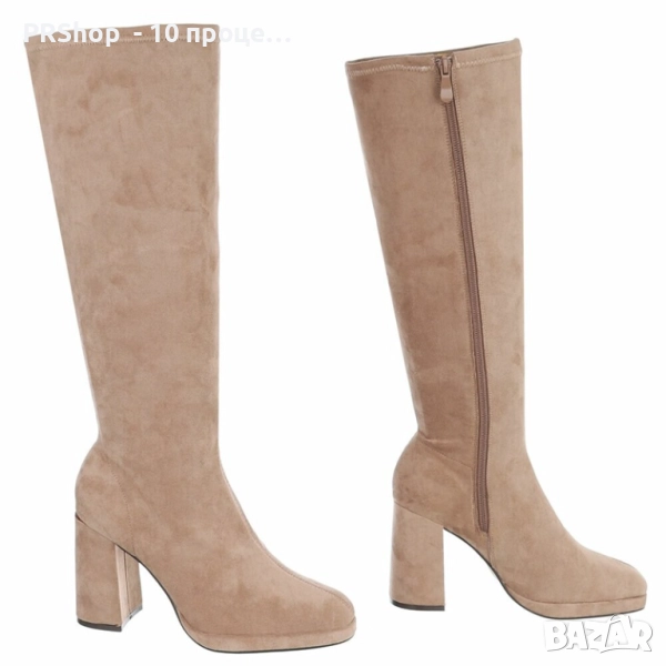 Дамски високи ботуши с ток, велур, св.кафяви → Обява 52046864