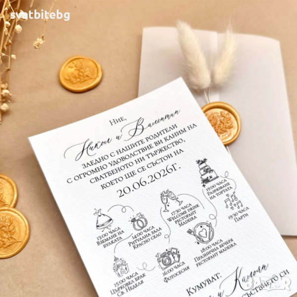 Покана Паспорт, Сватбени покани с восъчен печат, покани с програма
