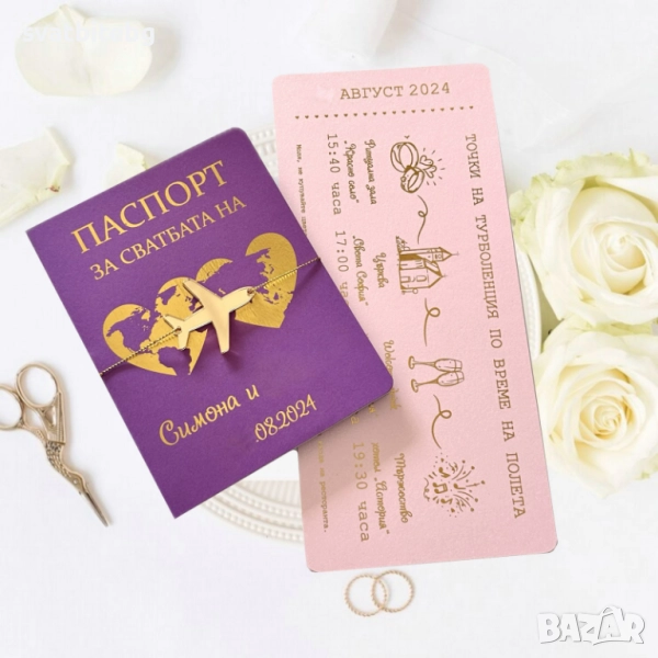 Покана Паспорт, Сватбени покани с восъчен печат, покани с програма → Обява 52046967