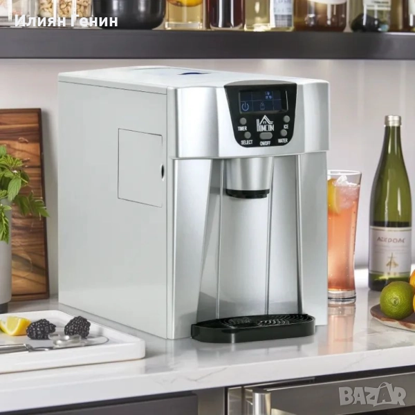 Дизайн 2 в 1: Този уред за производство на лед с диспенсър за вода е многофункционален уред, който съчетава производство на лед и снабдяване с питейна вода, елиминирайки нуждата от отделен диспенсър за вода и спестявайки място.