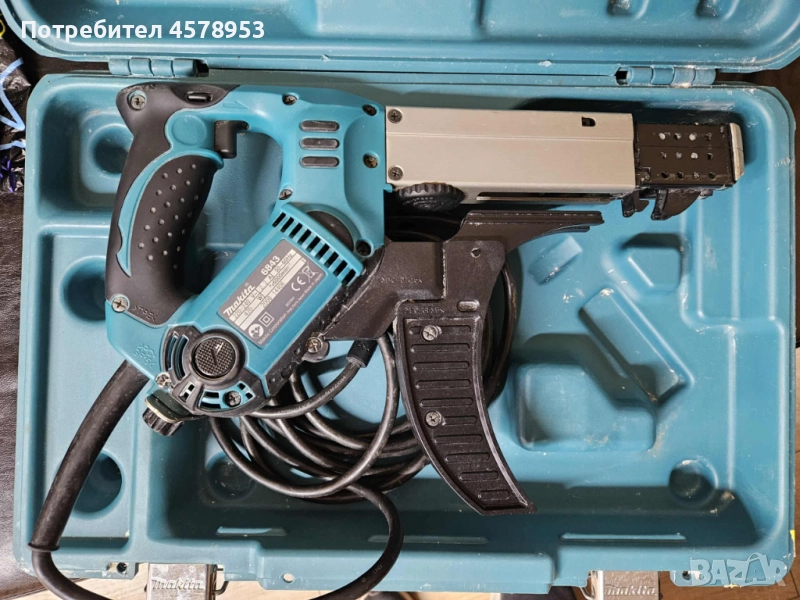 Отвертка Makita 6843/2 240V с автоматично подаване плюс куфар. Висока скорост за бързо фиксиране