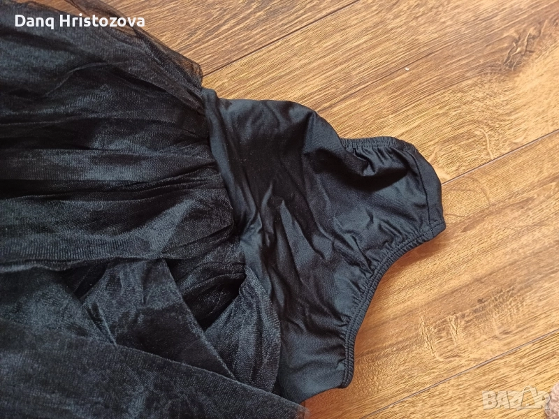 Тази рокля и шапка са слагани веднъж- на Хелоин.Рокличката е с 4 пласта тюл, и много еластично трико, което се облича като боди, с презрамки на гърба ( става и за други поводи). Шапката е много красива, с ластик.Комплекта е подходящ за момиче около 4 клас.