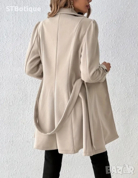 🌸 STBoutique – Елегантно дамско дълго палто с колан – Бежов 🌸 → Обява 52048157