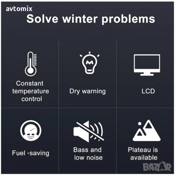 - Широко приложение: подходяща за употреба в каравани, кемпери, палатки, гаражи, за отопление на кабината на товарни автомобили, ванове, бусове и за всякакви земеделски и строителни превозни средства.