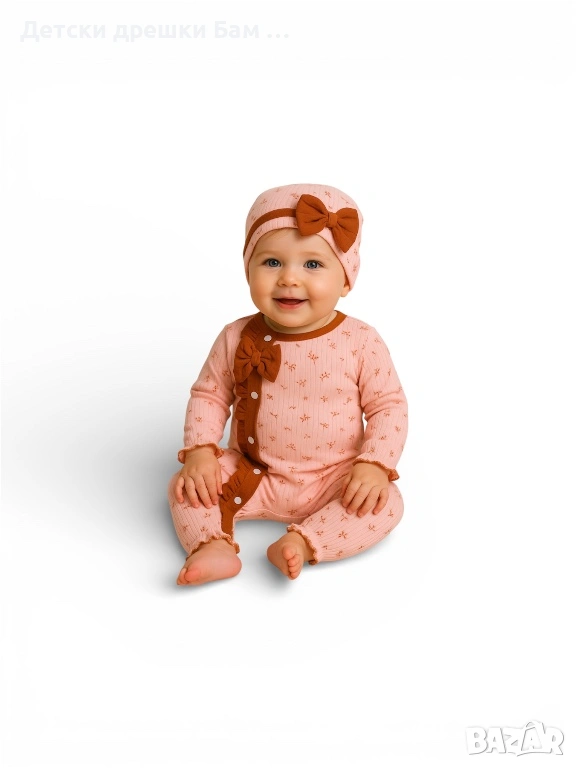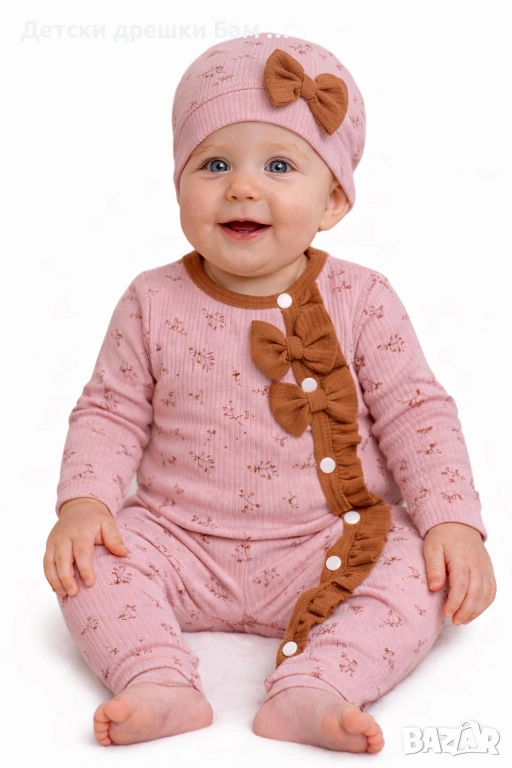 Рипсено гащеризонче с панделки и шапчица