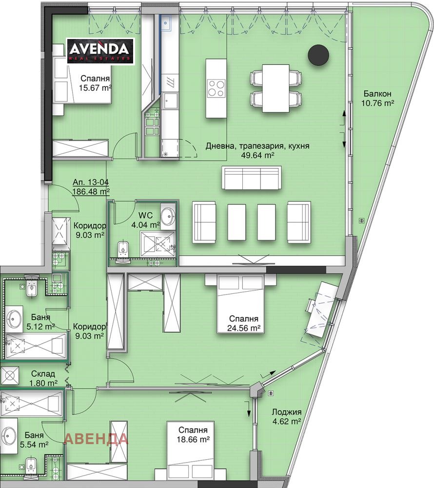 Предлагаме за продажба четиристаен апартамент, разположен на 13-ти от 15 етажа, с обща застроена площ от 228 кв.м., чиста площ 187 кв.м., изложение североизток. Жилището се състои от антре, коридор, складово помещение, три бани + тоалетни, три спални (16 кв.м., 19 кв.м., 25 кв.м.), дневна с кухненски кът 50 кв.м., два балкона. Височината на таваните е 3м., което осигурява допълнителна светлина и простор. Шумо и топлоизолацията между жилищата и етажите, е от най-висок клас. Дограмата и входните врати на апартаментите са изпълнени с безкомпромисното качество на Schuco, троен стъклопакет 6-4-6 с аргон, гарантиращ пълно шумо и термо изолиране, с UV защита.
