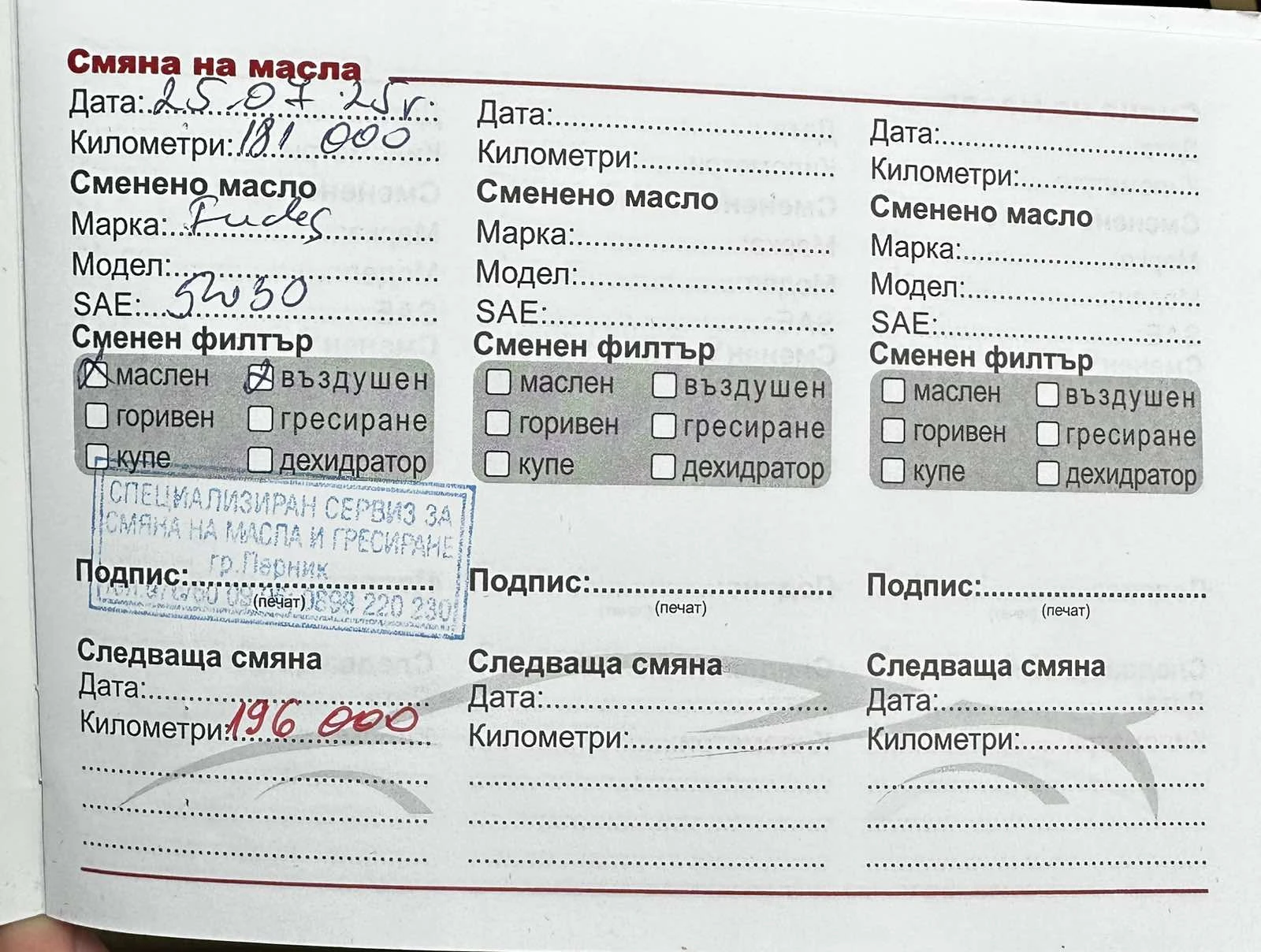 - • Сервизна книжка