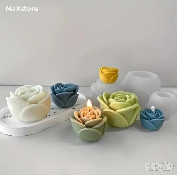 3D 3 размера роза рози Силиконов молд форма за свещи гипс сапун смола фондан → Обява 52048752