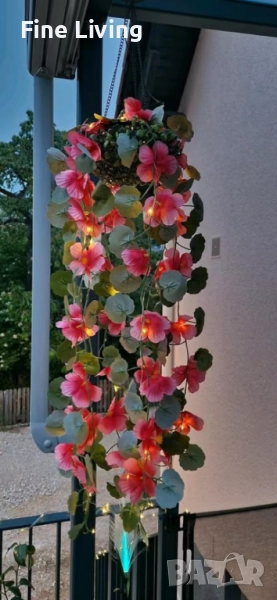 Соларна висяща саксия с LED осветление Living & Garden – 60 LED, топло бяло → Обява 52048844
