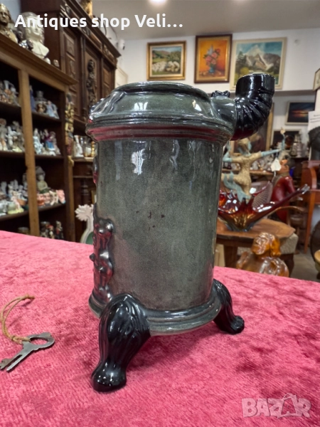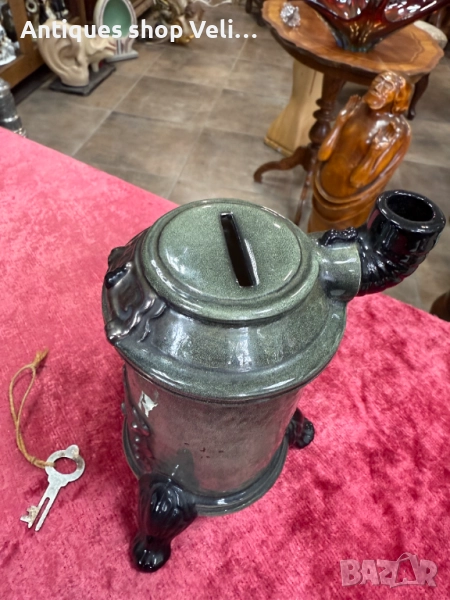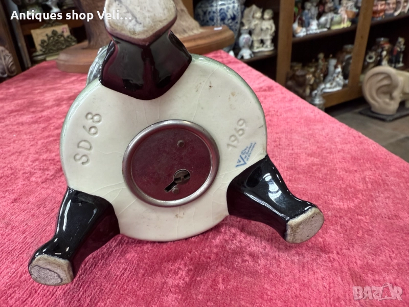 Колекционерска порцеланова касичка с ключ. Перфектно състояние. Предлагаме доставка с Еконт и лично предаване за градовете Велико Търново, Русе и Сливен! Височина-16,5см.