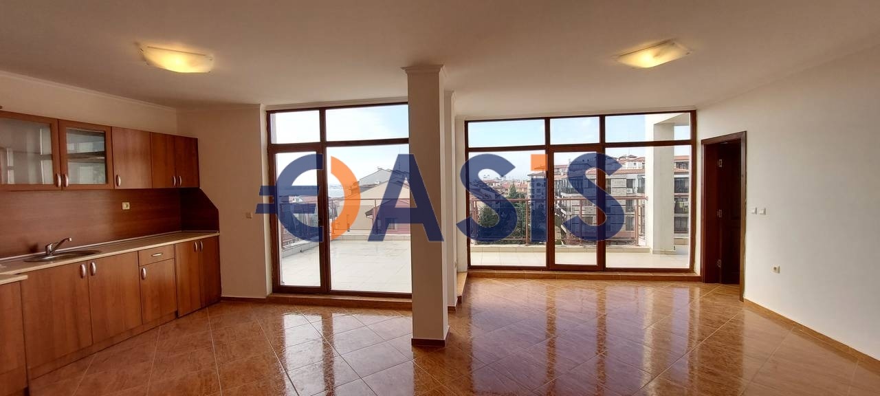 Просторна всекидневна с кухненски бокс, две спални, баня с тоалетна и 3 тераси . От терасата се открива прекрасна гледка към морето . Банята е оборудвана с плочки, санитария,вана.